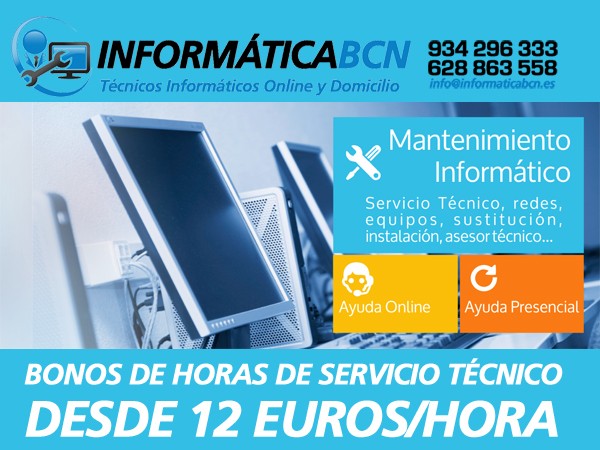 Por favor complete el formulario de su derecha para solicitar más información y nos pondremos en contacto con usted. También puede comunicarse con nuestro Departamento de Servicio al Cliente al teléfono 934 296 333 o al móvil 628 863 558 (tambien whatsapp) , o bien enviar un email a info@informaticabcn.es